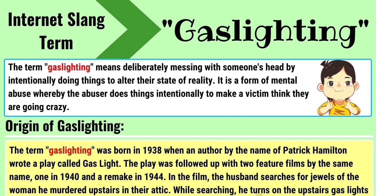 가스라이팅이라는 용어는 1938년 영화 "가스라이트(Gaslight)"에서 유래했습니다. 이 영화는 한 남자가 아내의 정신을 붕괴시키기 위해 가스등 불빛을 조작하는 내용을 담고 있습니다.