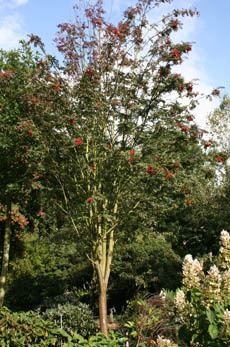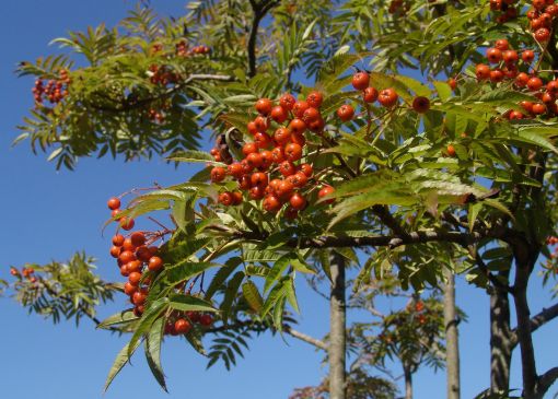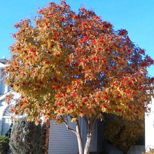 마가목은 높이가 8미터에 이르는 나무로 한국과 일본을 포함한 동아시아가 원산지입니다. 나무껍질은 짙은 갈색이고 잎은 군락을 이루고 있습니다. 초여름에 작은 흰색 꽃이 피고 열매는 붉고 둥근 모양을 가지고 있습니다.