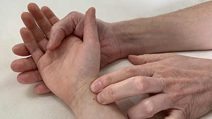맥박은 주로 손목이나 목에 있는 동맥을 손가락으로 눌러서 측정할 수 있습니다. 손목에서 측정할 때는 오른손 엄지손가락 아래에 있는 요골동맥을 왼손 두 번째와 세 번째 손가락으로 가볍게 누르고, 목에서 측정할 때는 아담의 사과 부위에 있는 경동맥을 가볍게 누릅니다.