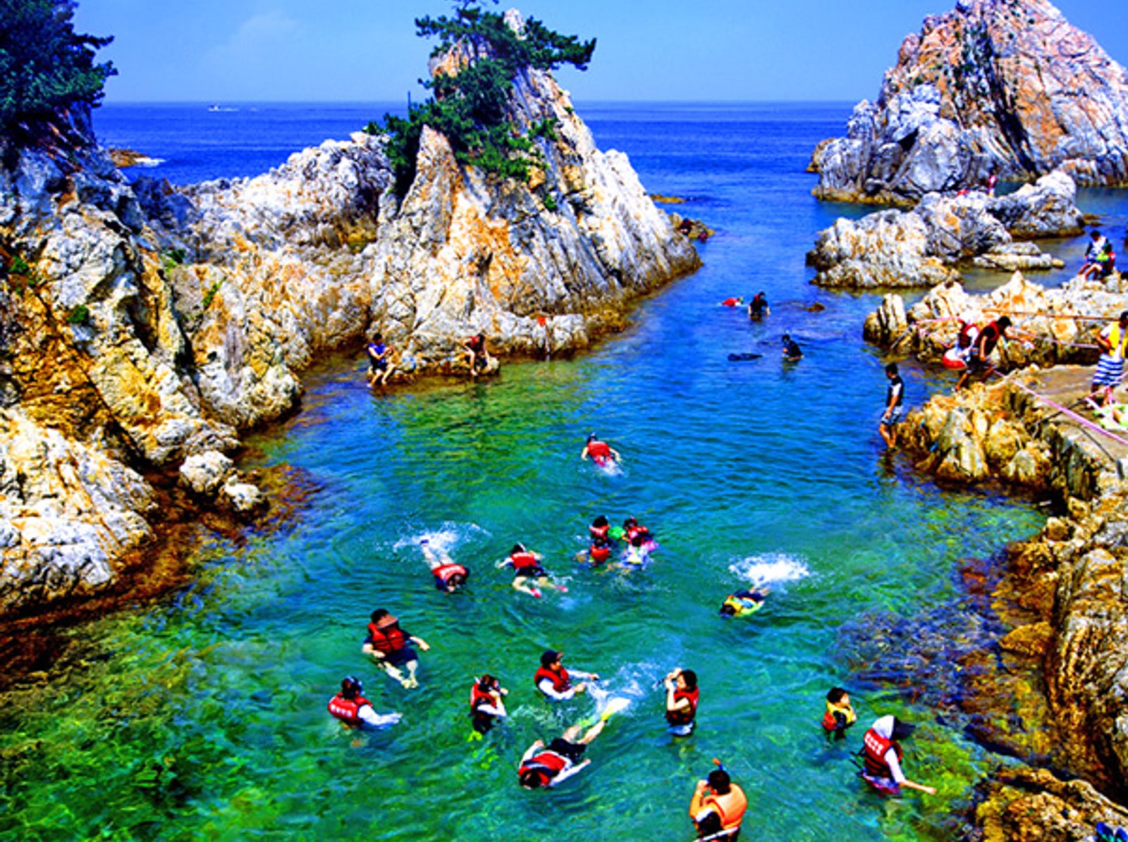 '동양의 나폴리'라고도 불리우는 장호항. 기암괴석으로 둘러싸여 있으며 수심이 깊지 않아 아이들이 놀기에도 제격합니다.
