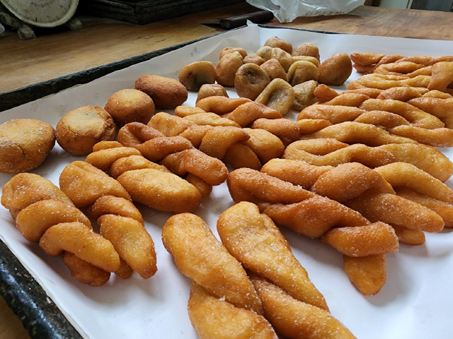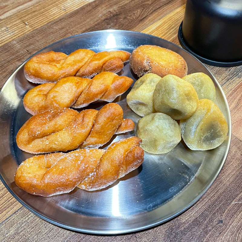 한 세트에 약 5천원인 빵 봉지 안에는 꽈배기 및 찹쌀 팥 도넛, 생 도넛 등이 들어 있습니다. 색다른 맛이라기보다는 늘 먹던 익숙하고 정겨운 맛이라고 보면 됩니다.