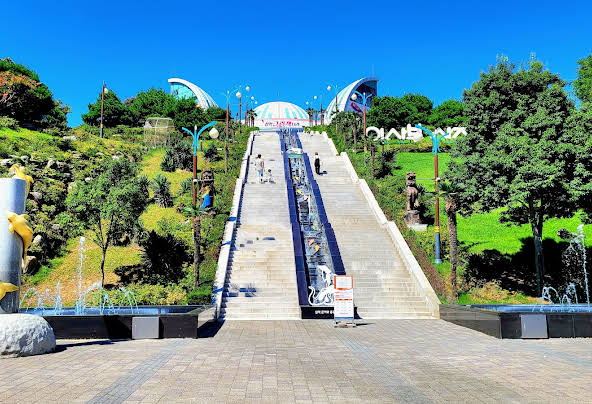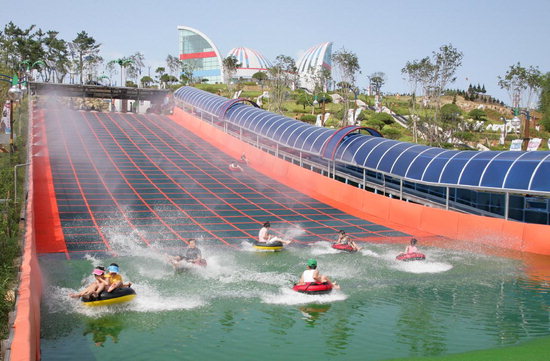 이사부사자공원에는 여름에 즐길 수 있는 시원한 물썰매가 있습니다. 공원 입구부터 아이들의 발길을 붙잡는 놀이터가 여러 곳 조성되어 있습니다.