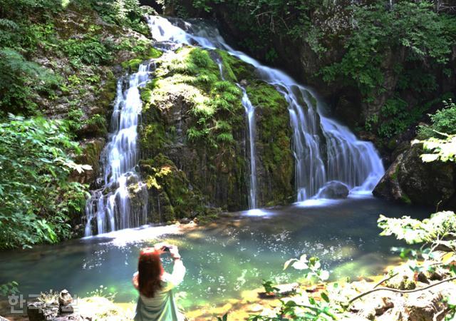삼척 미인폭포는 특유의 아름다운 빛깔로 SNS에서는 밀키스 폭포라고도 유명하며 이국적인 여행장소로 입소문이 나고 있습니다.