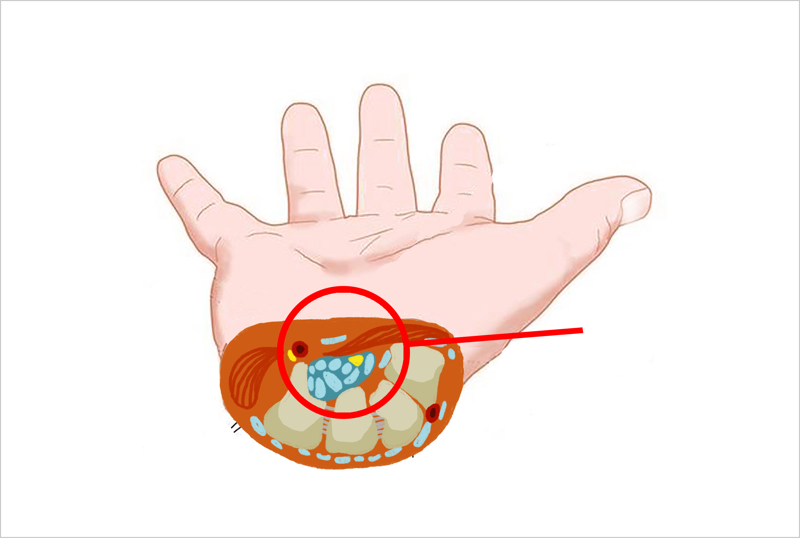 손목 터널 증후군(CTS)이란 손목 안의 정중신경이 압박되어 발생하는 질환입니다. 정중신경은 손목 안의 손목터널을 통과하여 손가락으로 가는 신경입니다.