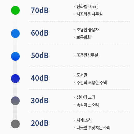 국가 소음 정보시스템 표에 따르면 40db 정도는 도서관 혹은 주간의 조용한 주택가에서 나오는 소음 정도라고 합니다.