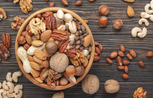 견과류 특징상 칼로리가 높아 섭취시 칼로리가도 증가할 수 있지만, 견과류에는 섬유질과 스테롤이 풍부하여 콜레스테롤의 체내 흡수를 줄일 수 있습니다.